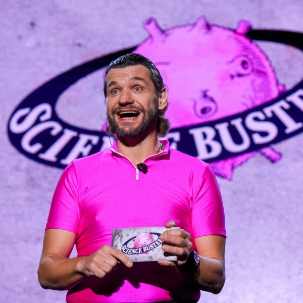 Kabarettist Martin Puntigam sorgt dafür, dass sich die Wissenschaftlerinnen und Wissenschaftler auf der Bühne halbwegs ordentlich benehmen und nicht in die völlige Unverständlichkeit abgleiten. Für seine Kabarettprogramme, Bücher und sonstigen Projekte ist er mit zwölf Preisen ausgezeichnet worden, unter anderem, als erster Kabarettist, mit dem „Inge-Morath-Preis für Wissenschaftspublizistik“. Die Beschäftigung mit der Wissenschaft hat sich gelohnt, denn seit 2016 ist der Medizinstudienabbrecher Universitätslektor an der Universität Graz.